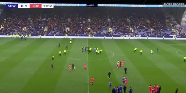 10月4日消息,谢菲尔德星期三与考文垂的比赛发生了突发状况,比赛在开场仅10分钟后因为球迷冲入场内而被迫中断。这些球迷是为了表达对俱乐部老板钱斯里的不满而进行抗议。主裁判暂停比赛约五分钟,待安全人员把这些球迷带离场地后,比赛才得以恢复。