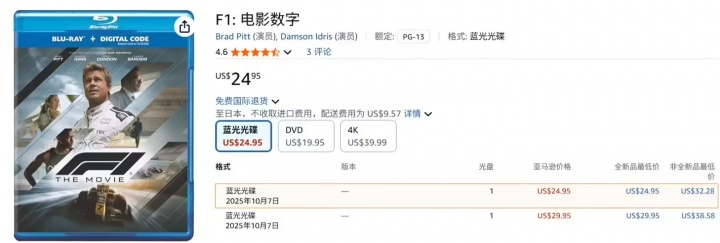 全球最受欢迎的体育电影《F1:狂飙飞车》正式发布蓝光和DVD实体光盘