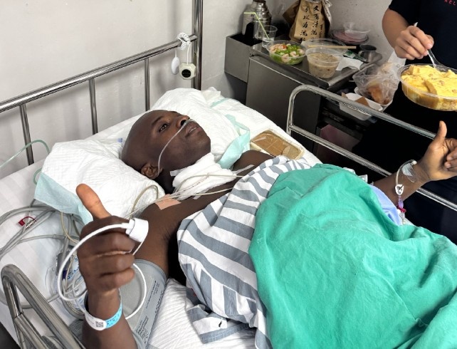 由于伤势严重,这一事件引起了自治区体育局的高度重视,领导迅速联系卫健委,并协调医院为阿萨莫阿提供优先的多科室会诊。俱乐部工作人员轮班陪护,并迅速联系阿萨莫阿的表弟赶到南宁,施以必要的支持。在此期间,平果市政府也没有缺席,特意派出慰问组于10月7日探望阿萨莫阿。