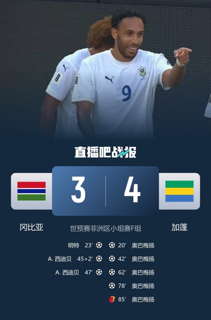 在这场非凡的较量中,我们目睹了加蓬国家队的英雄奥巴梅扬,带领球队在客场以4-3的精彩比分战胜了冈比亚。这位年届36岁的前锋,无疑是今天的焦点,他的卓越表现为加蓬赢得了至关重要的胜利。四个进球,像闪电般划破寂静,展现出他无与伦比的实力和经验。